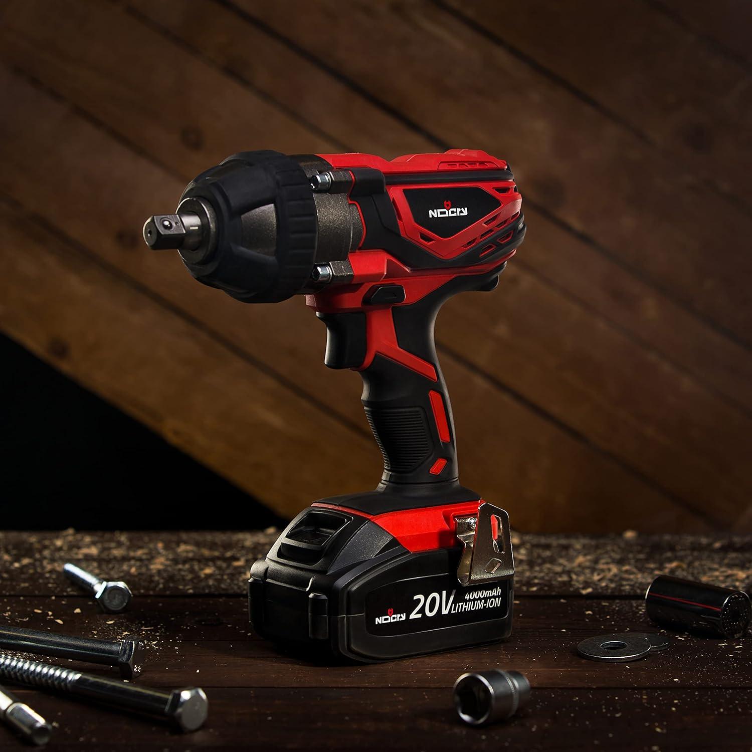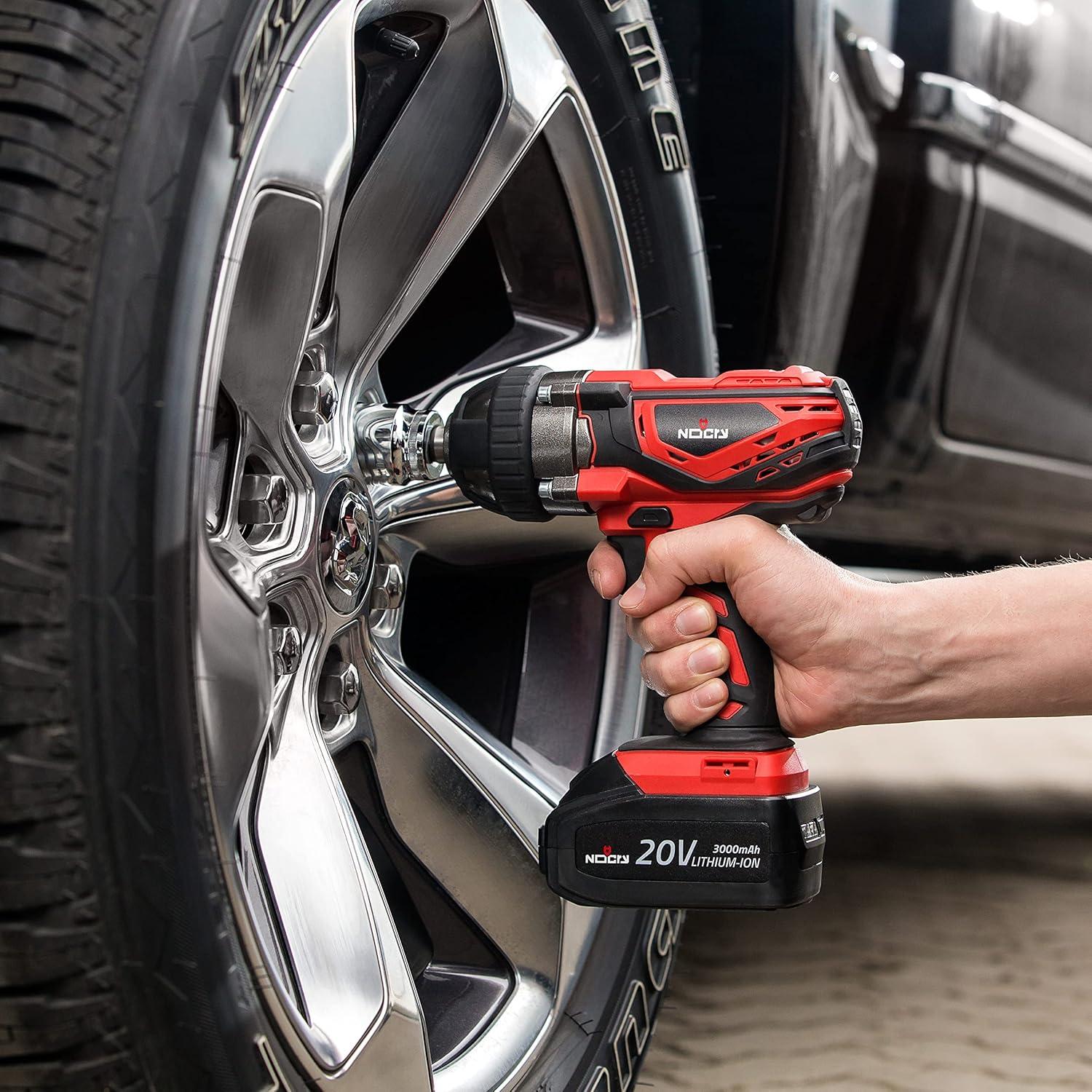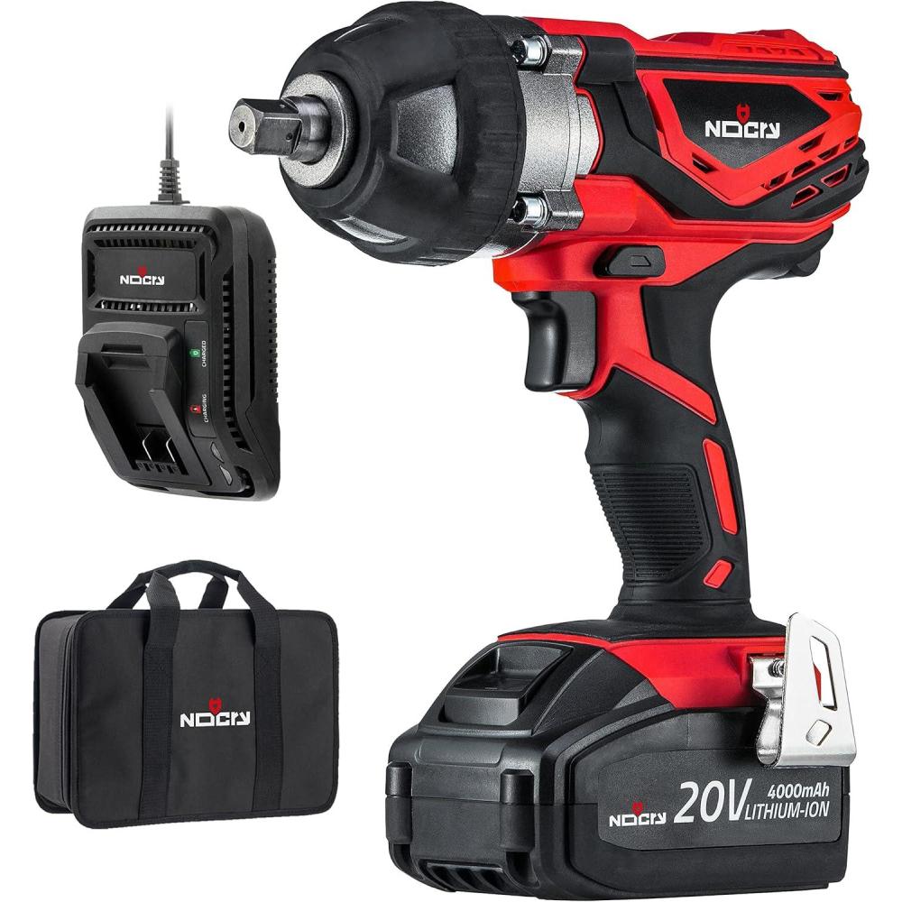 This cordless impact wrench will loosen any lug nut, bolt or large screw with 300 ft-lb (400 Nm) of torque, and tighten with 260ft-lb. Along with the tool itself, you will get one 20volt battery, a belt clip, fast charger, and a carrying case.