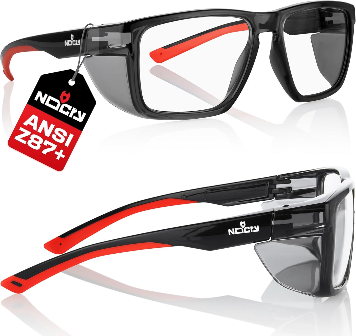BUILT TO TAKE A HIT — These ANSI Z87.1 safety glasses shrug off flying debris with tough polycarbonate and built-in side shields that guard your blind spots. These impact resistant glasses are ready to handle high-impact situations, our clear safety glasses for men and women have a lightweight frame and slip-resistant temples.