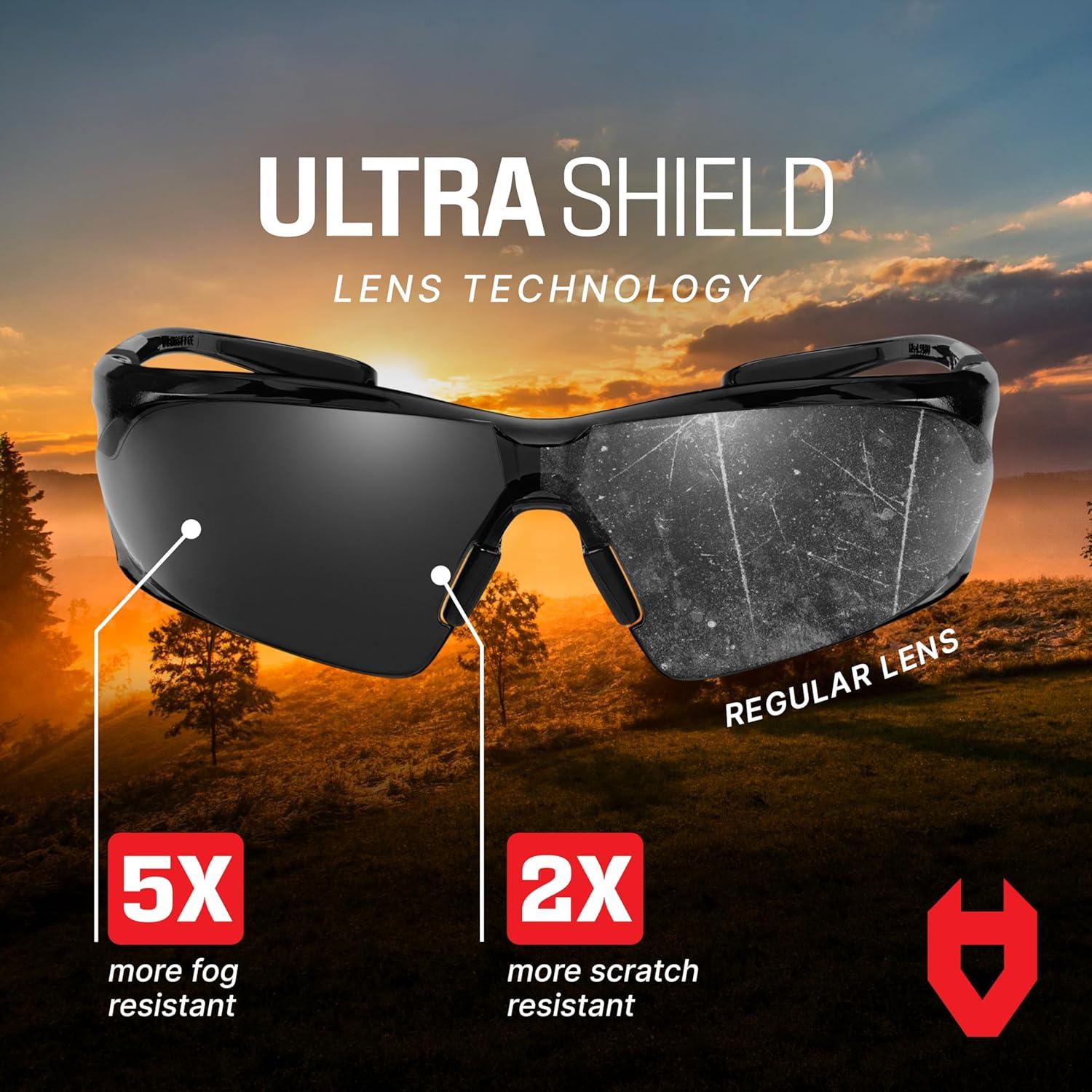 NoCry Anti-Fog Safety Sunglasses for Men with Scratch Resistant Lenses — Tinted Safety Glasses for Construction with 100% UV Protection — ANSI Z87.1 Work Sunglasses with Adjustable Temples & Nose Pad(Black & Black)