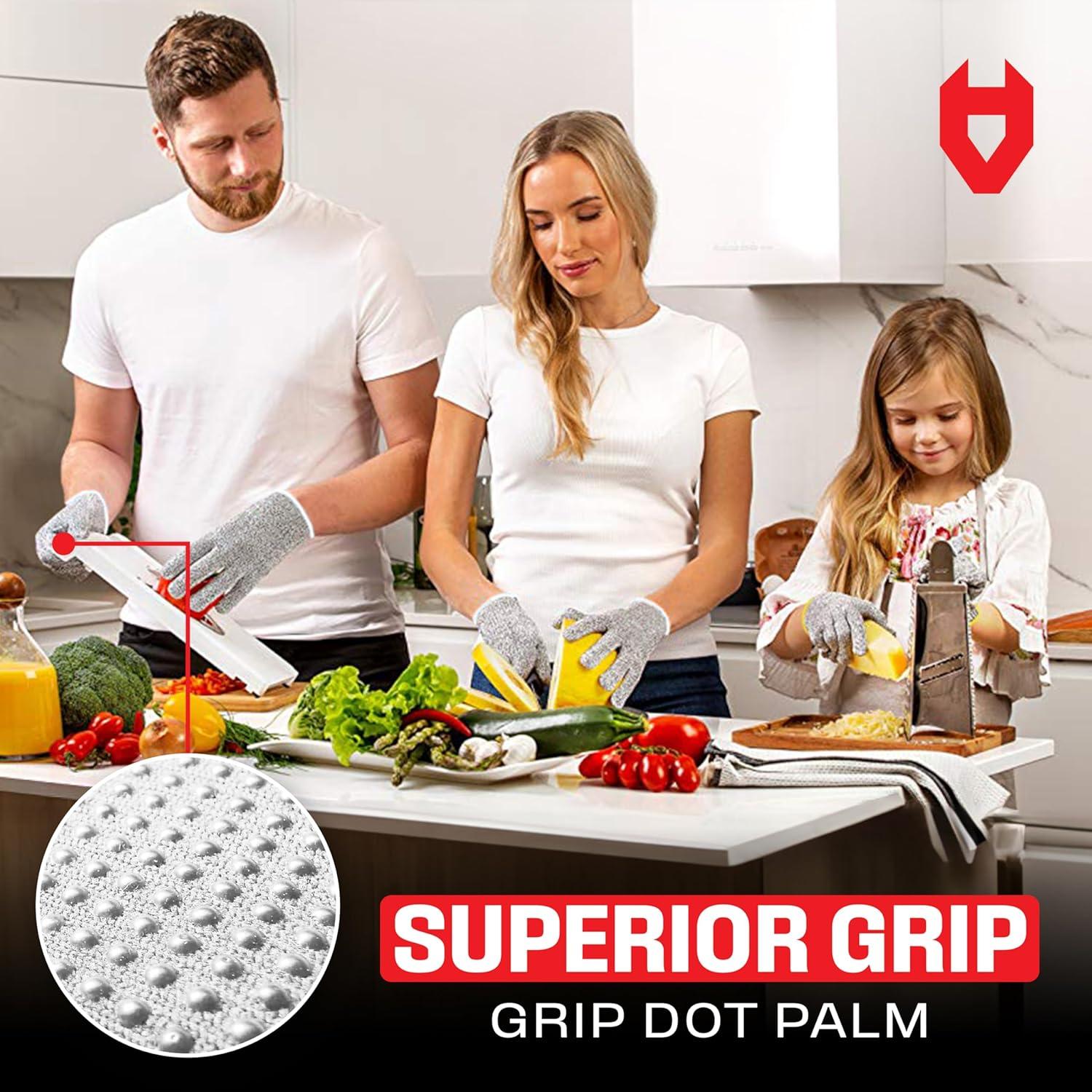 NoCry Cut Resistant Gloves Food Grade with Grip Dots for Superb Grip - Breathable & Lightweight Cutting Gloves for Chefs - Ambidextrous - Cut Resistant Kitchen Gloves for Cutting or Woodworking Gloves(Grip Dots (Grey))