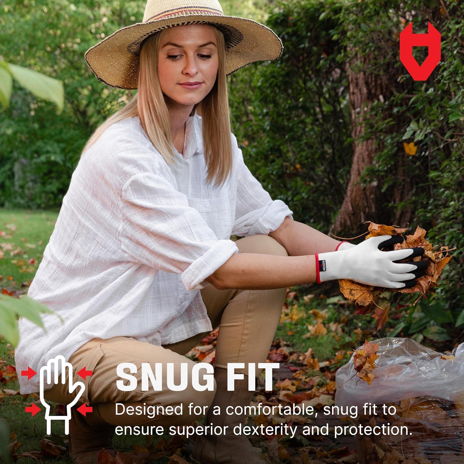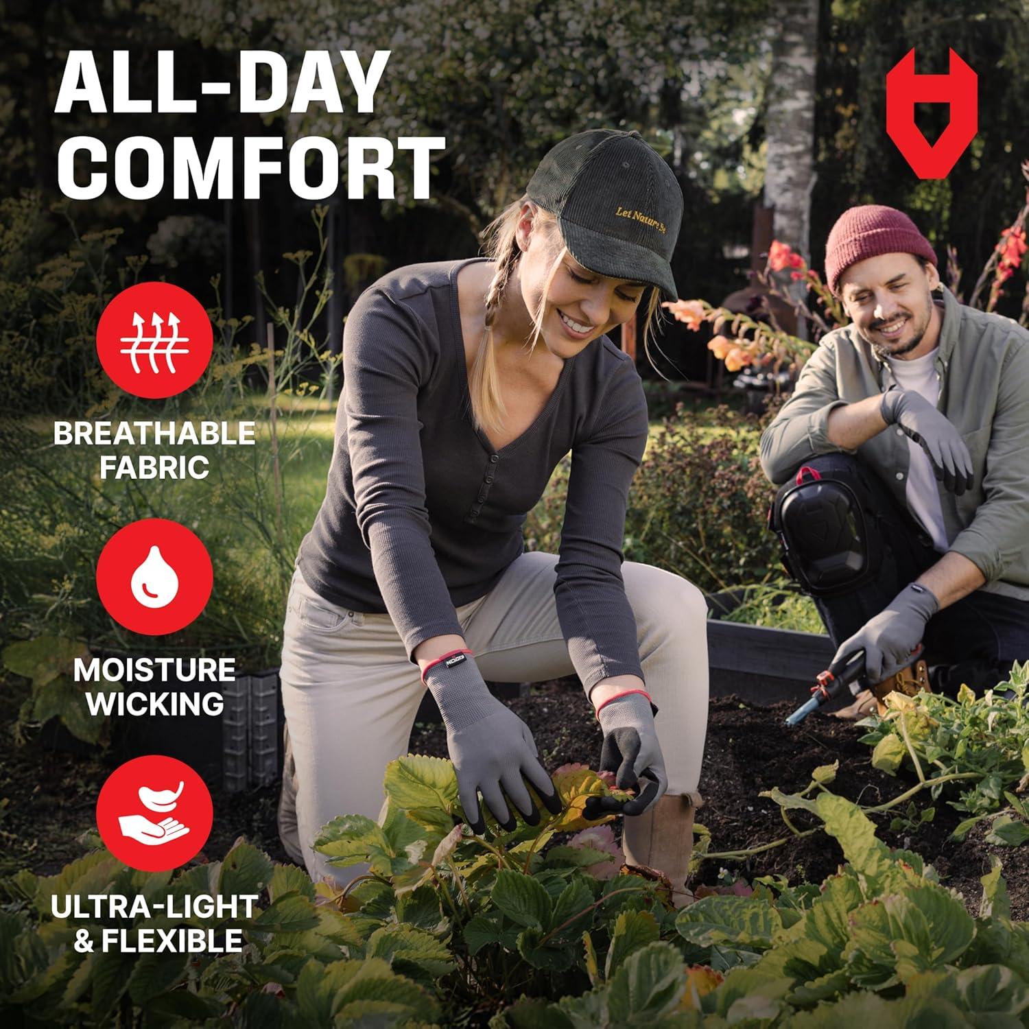 DURABLE RUBBER COATING – Experience long-lasting protection that you can rely on with these firm grip gloves for gardening. Crafted with a durable, water-repellent rubber coating on the palms, these men's gardening gloves are tear and abrasion-resistant, making them ideal weed pulling gloves.