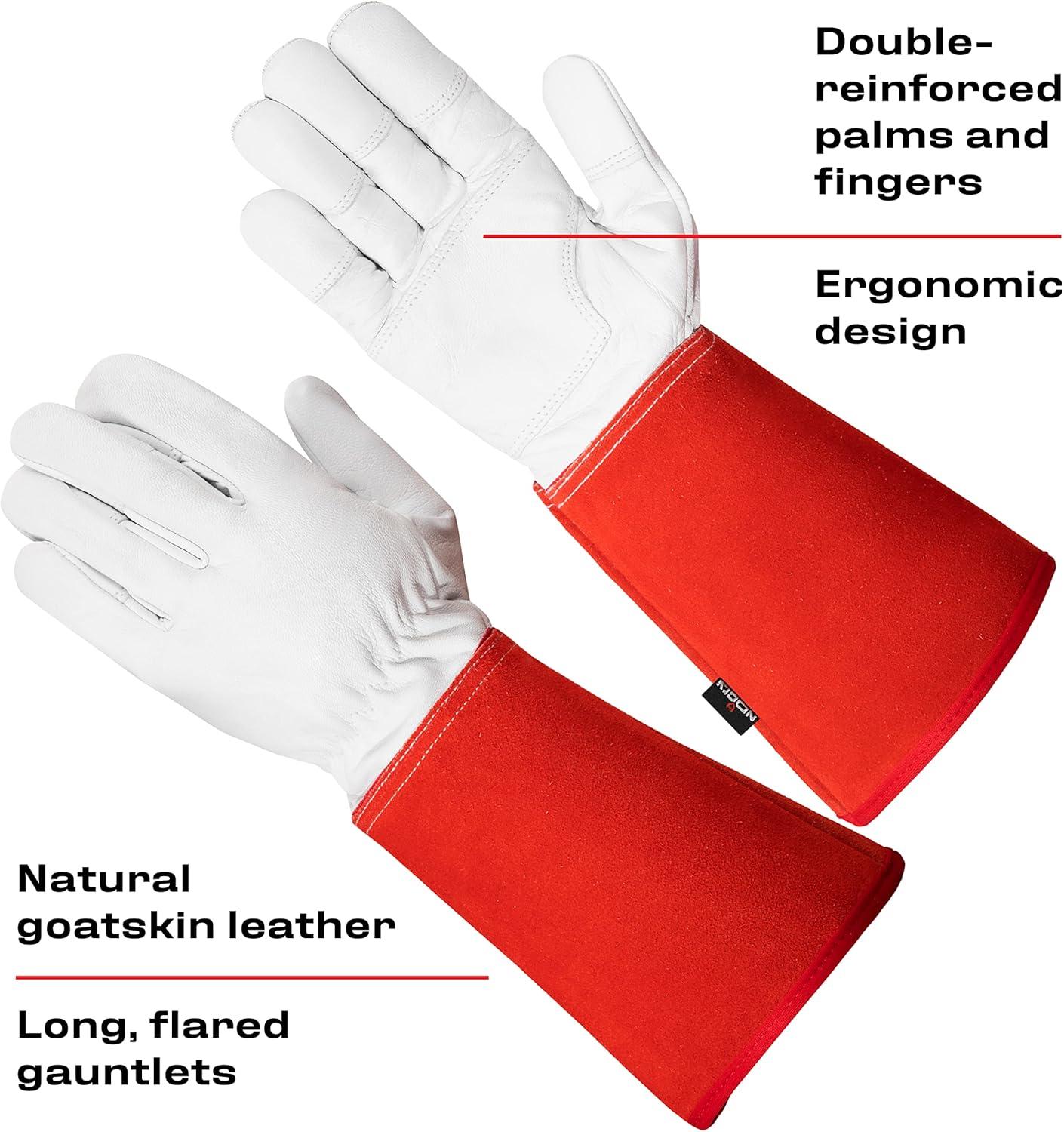 NoCry Guantes largos de jardinería de cuero para mujeres y hombres; a prueba de espinas para podar cactus, rosas y zarzamoras, guantes para trabajos de jardinería; palmas y dedos reforzados; rojo; M
