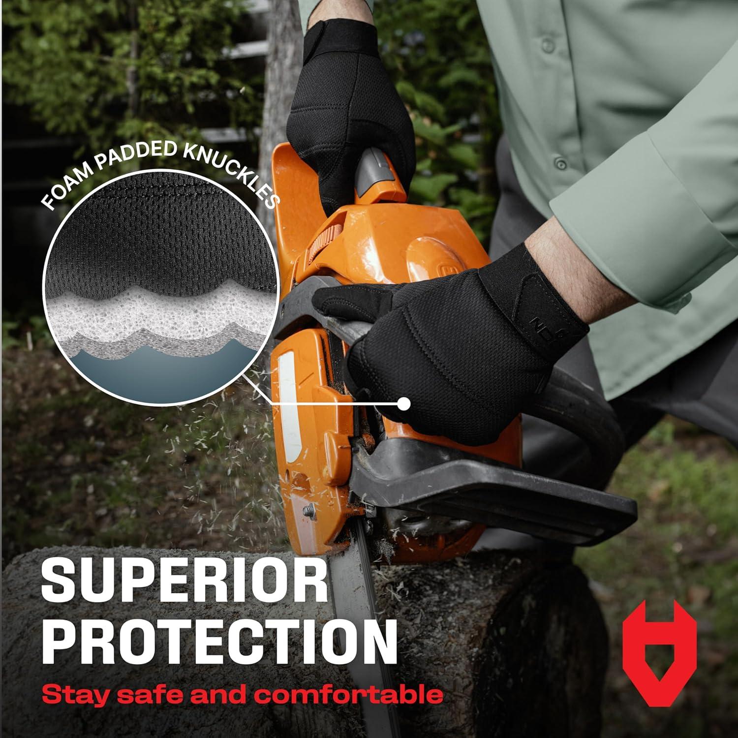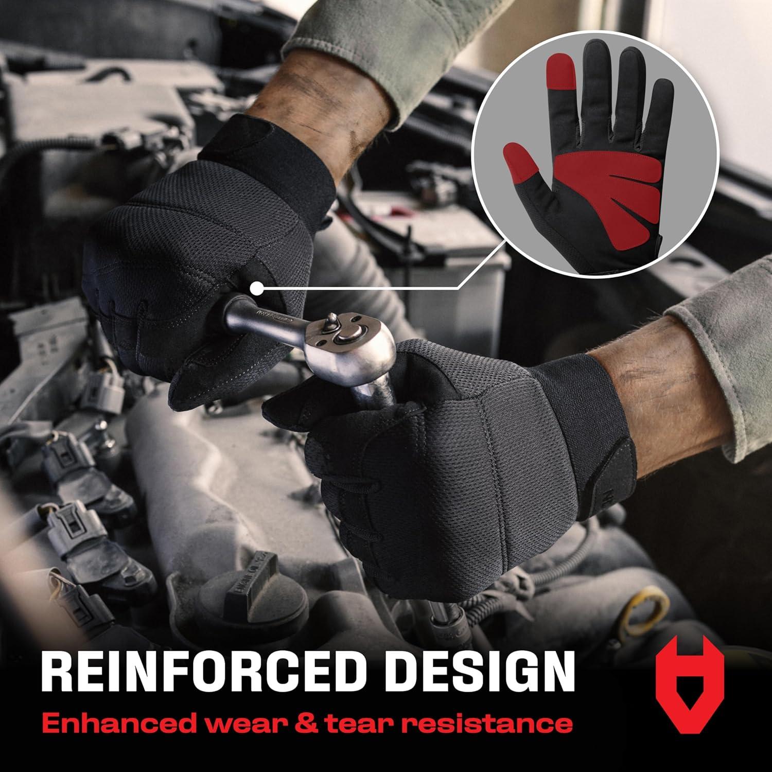 TOUCHSCREEN AND MACHINE WASHABLE — Text, tap, and swipe, without ever having to take your heavy duty work gloves off. And when you're done for the day, throw these in the wash and your mechanical gloves for men will be ready for action in no time.