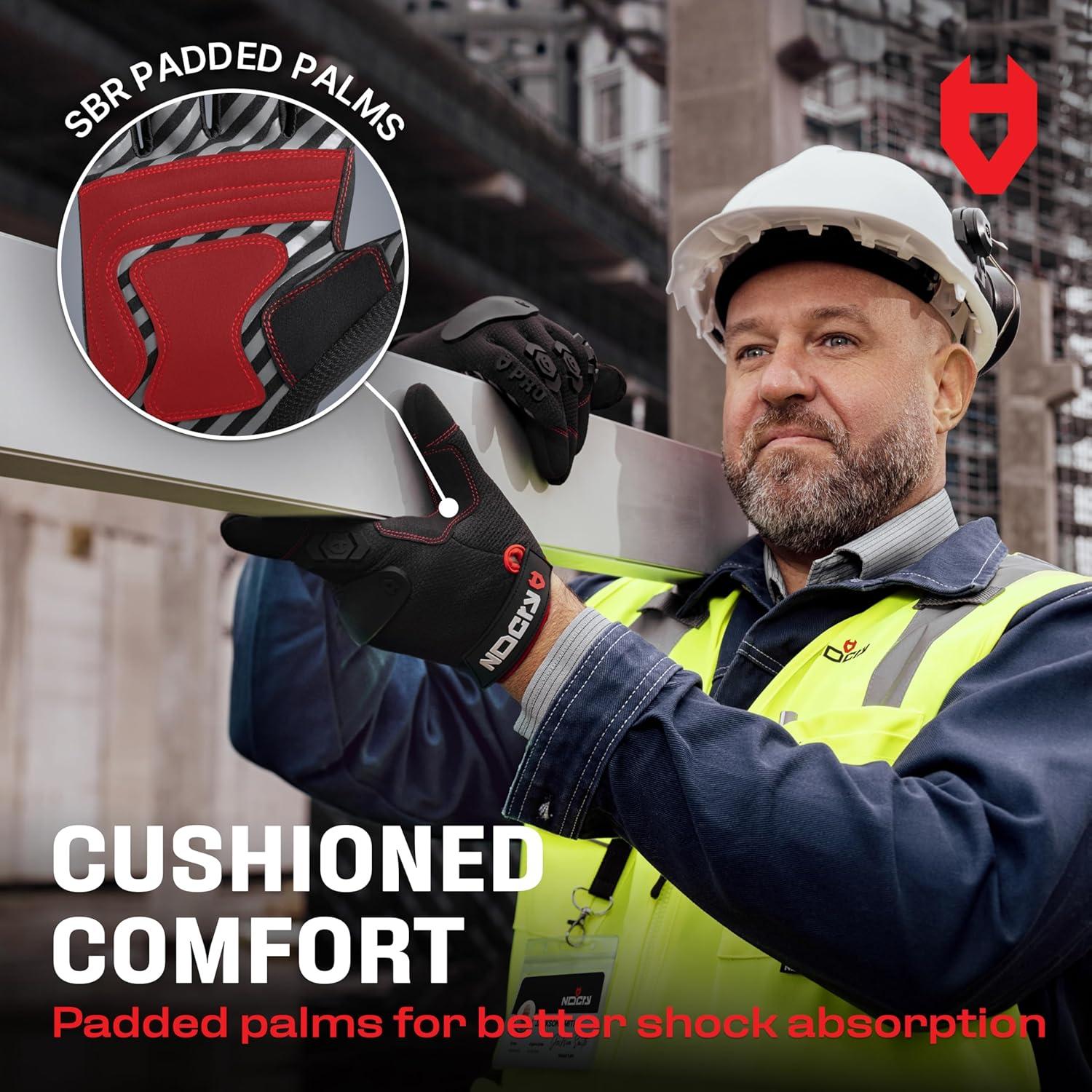 TOP PROTECTION FOR WORKING HANDS — Enjoy superior protection without sacrificing performance. With soft PVC knuckles, these construction gloves for men will shield your hands from bumps and blows without restricting movement. And the shock-absorbing padded palms provide all-day comfort.