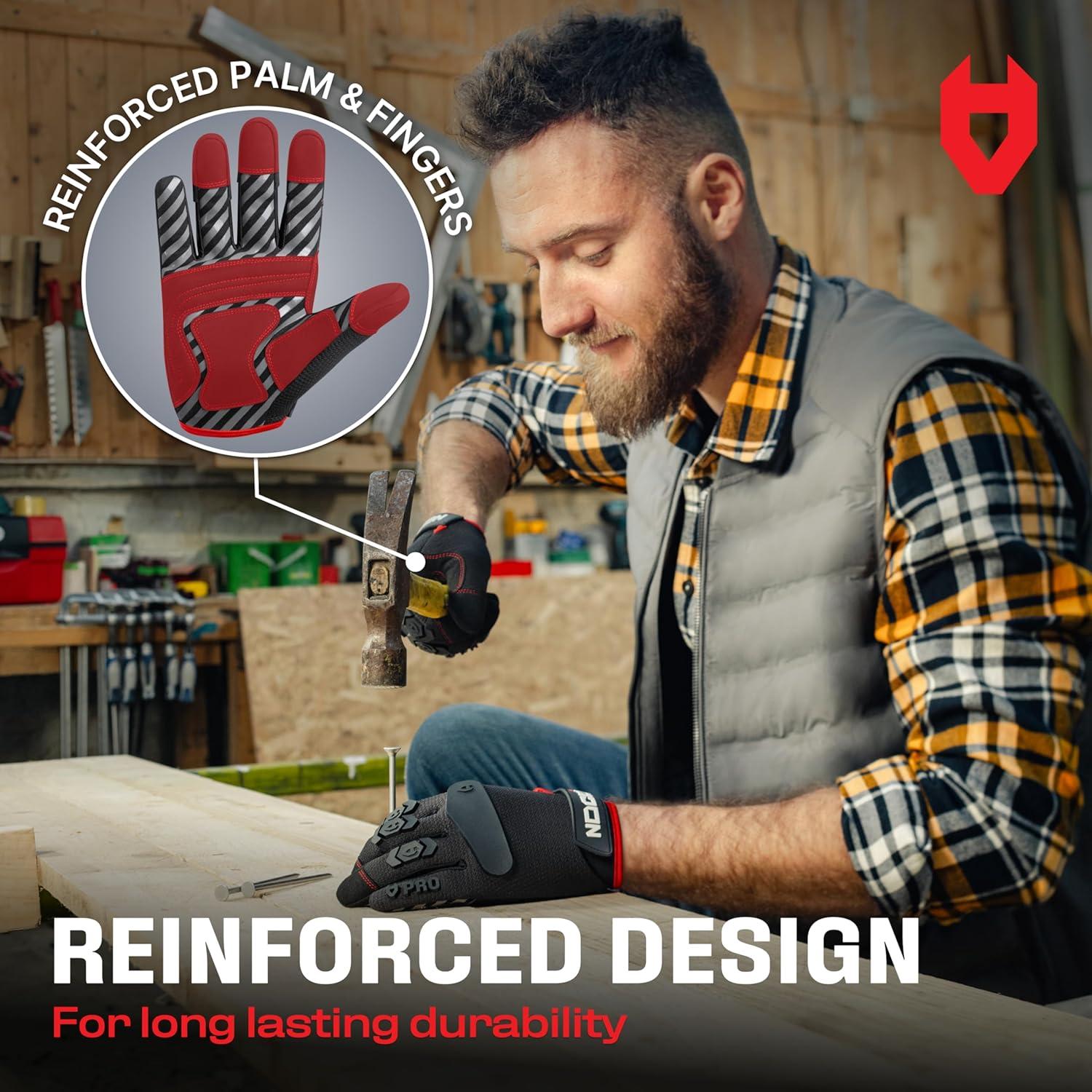 BUILT TO LAST — Crafted for your toughest jobs, these heavy duty gloves for work are strong where it matters. Reinforced in high-wear areas and strengthened with double stitching, these mechanic gloves for men will last through every task.