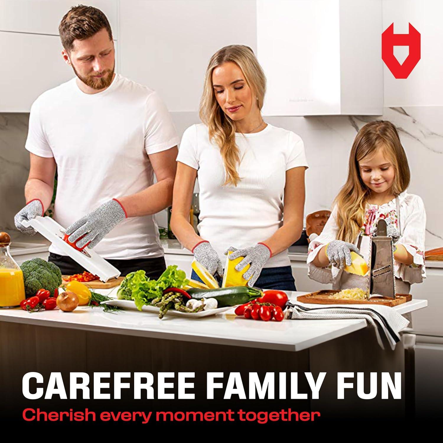TOUGH YET COMFY – These kids cut resistant gloves food grade are as light as a feather but tough like a knight’s armor! Awarded with the highest level of cut resistance, these mandoline gloves, or wood carving gloves are ready to guard against any accidental nicks or cuts.