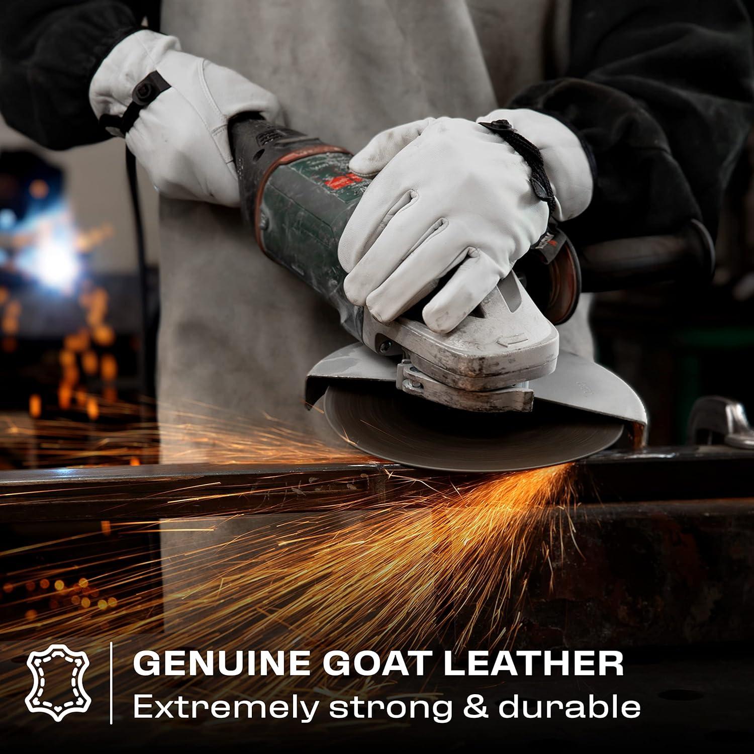 MADE WITH 100% GOAT LEATHER. Get strong, comfortable and extremely durable work gloves that’ll last through every gardening, construction, yard or DIY project you tackle. These are the exact work gloves men (and women!) need for superior protection.