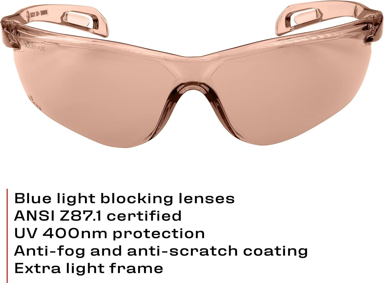 ANSI Z87.1 Certified. The light design and orange lenses make these anti fog safety glasses perfect for outdoor work in foggy, muggy or winter conditions. They can double up as shooting glasses, as blue light blockers at the dental office office, or as PPE at the warehouse.