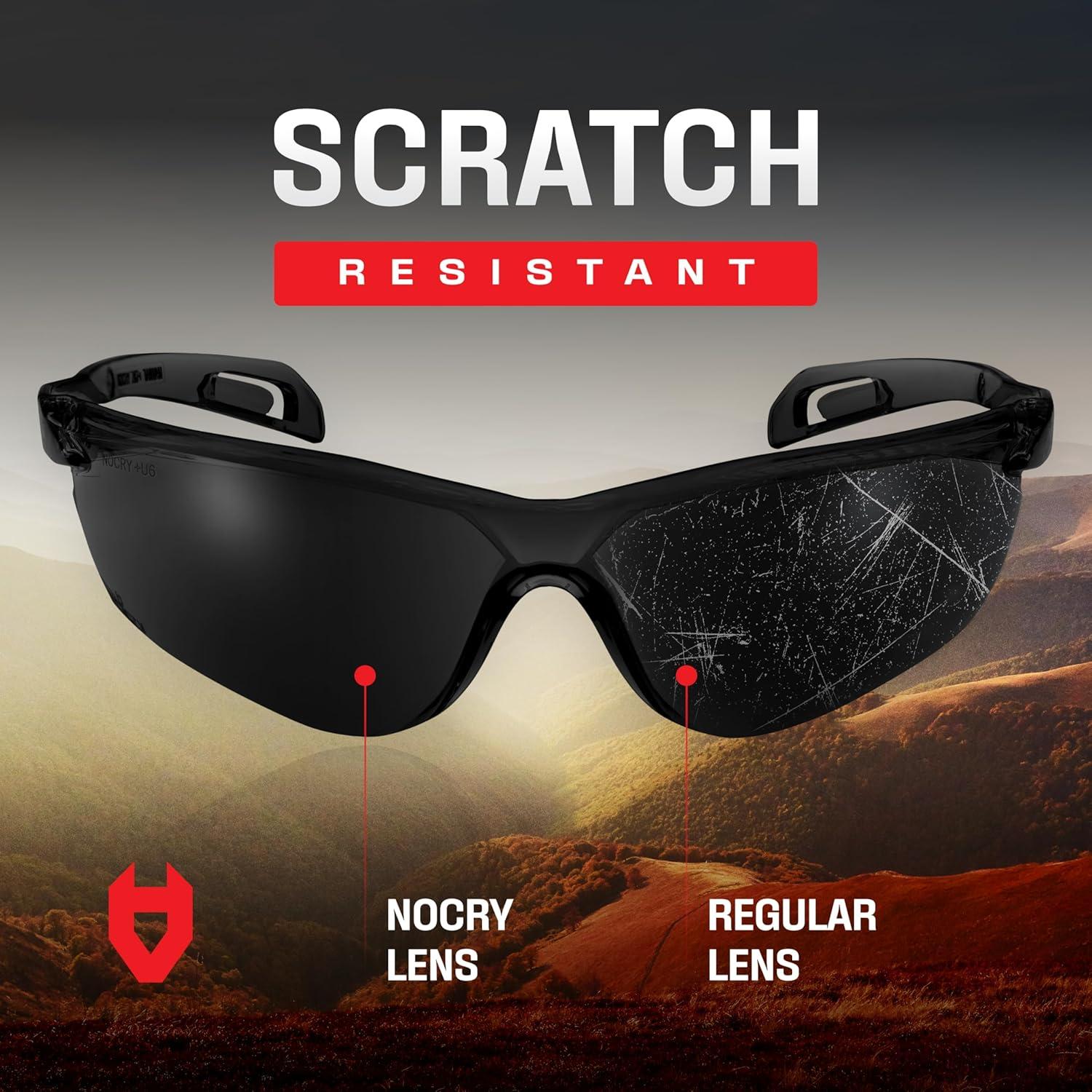 NoCry Lightweight Tinted Safety Glasses with UV 400 Protection, Anti Fog and Anti Scratch Coating and Grey Wrap Around Lenses; ANSI Z87.1 Certified(Tinted)