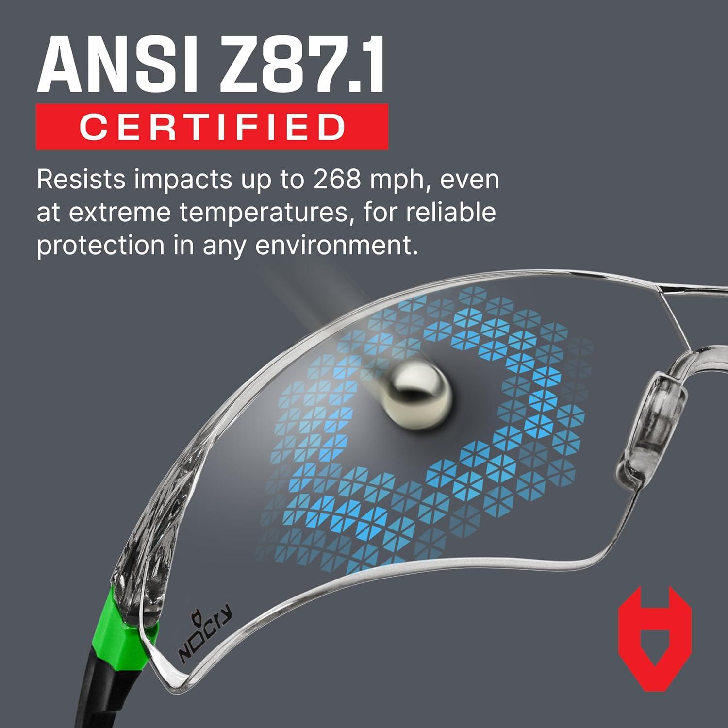 ULTRASHIELD LENS TECHNOLOGY — Compared to most clear protective glasses, the premium coating on our safety glasses anti fog is 5x more fog resistant and 2x more scratch resistant. No fog, no scratch, and zero optical distortion.