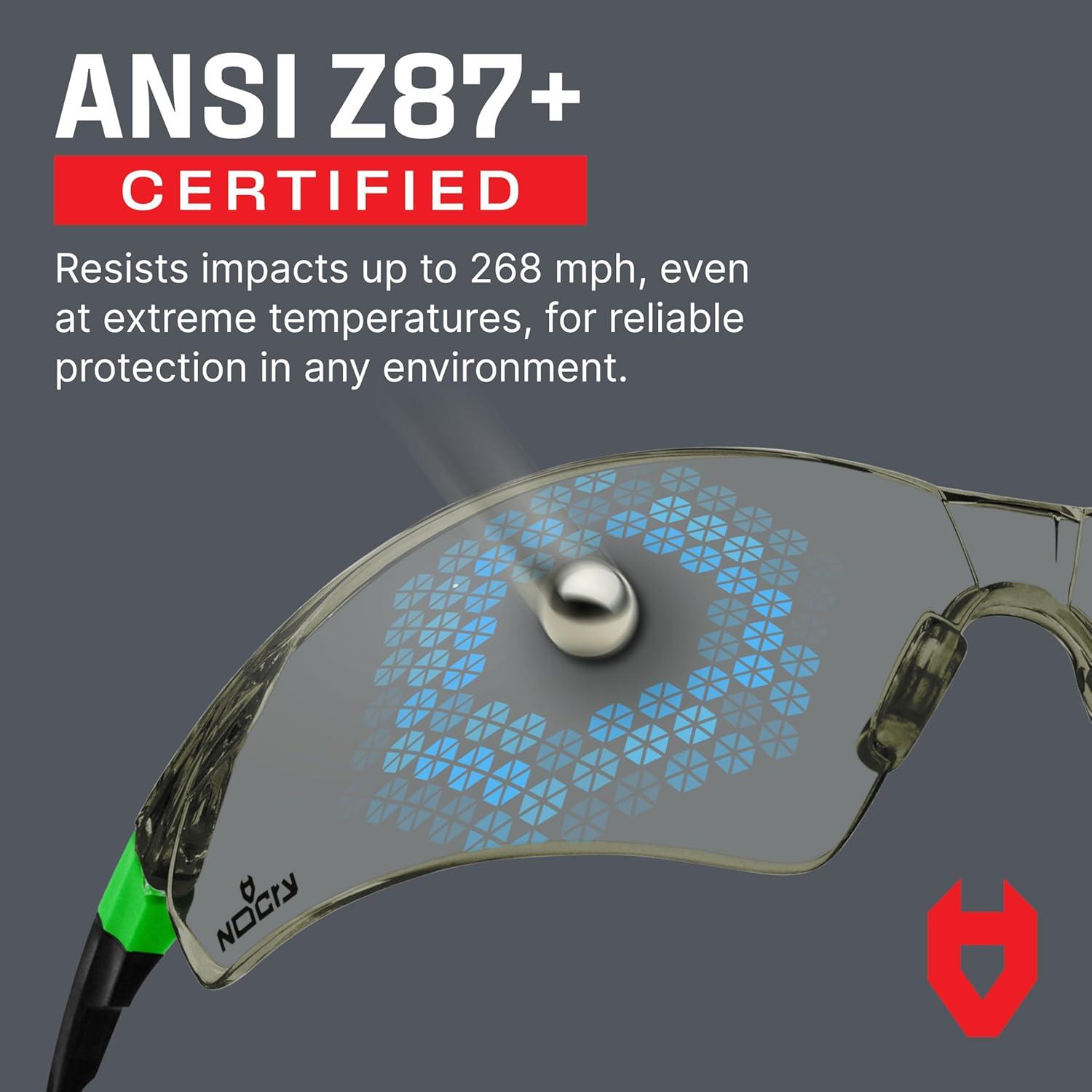 PREMIUM ANTI-SCRATCH COATING — These professional mens safety glasses tinted are built for tough conditions. The premium anti-scratch coating keeps your lenses safe, ensuring your mens safety sunglasses for work last longer. With top-notch impact resistance, these ANSI Z87 sunglasses for men offer reliable protection.