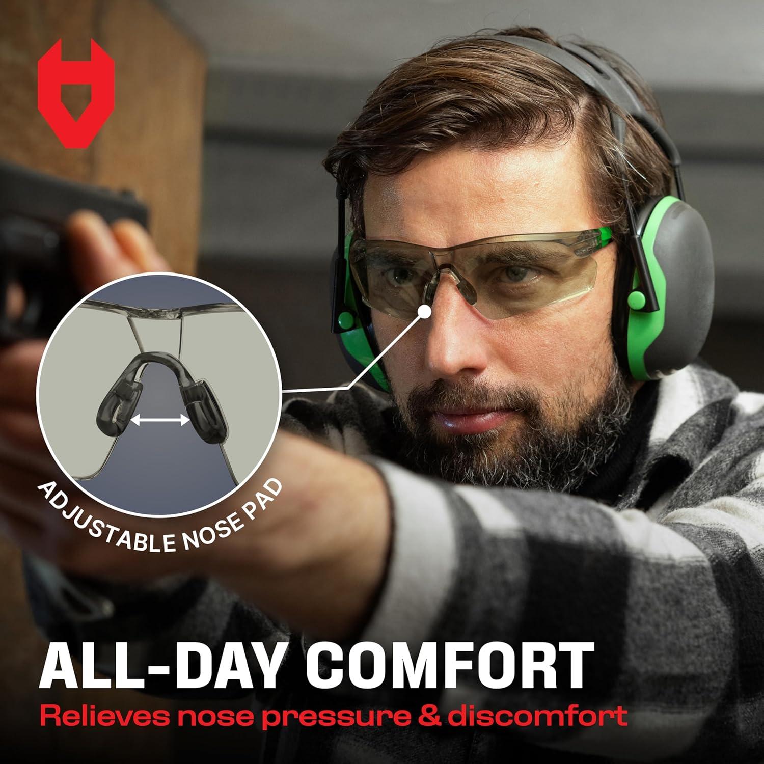 FULLY ADJUSTABLE — Our protective eyewear is built for comfort. The soft nose pad and rubber tips help distribute weight evenly so they feel great. You can even change the length and angle of your safety glasses sunglasses for women and men to ensure a perfect fit.
