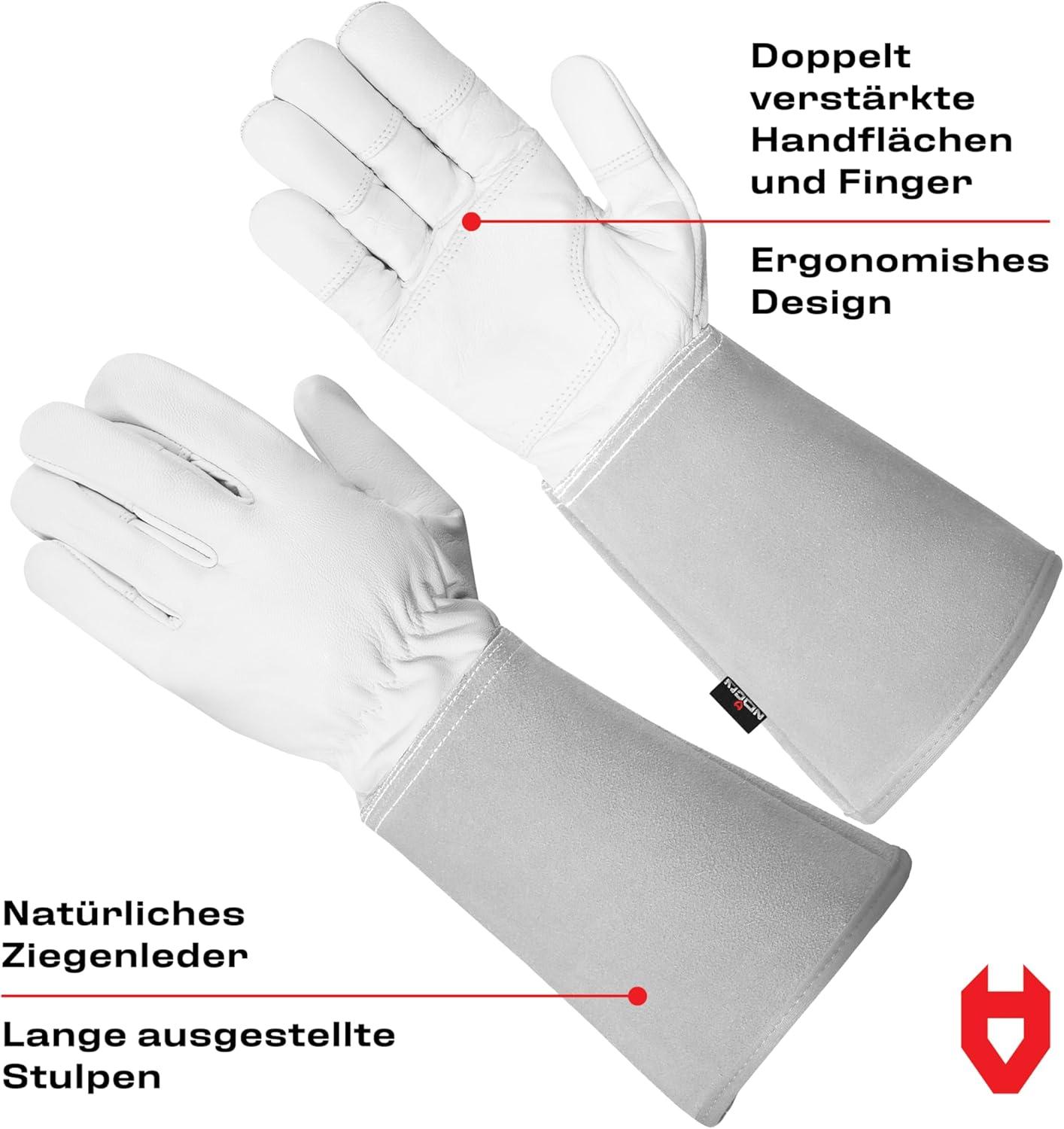 DESIGNED FOR COMFORT & FLEXIBILITY — The goatskin leather in these puncture resistant women's gardening gloves is soft and supple yet provides heavy duty protection. Thanks to these gardening gloves for women thorn proof, you can handle shears and move your fingers with ease.