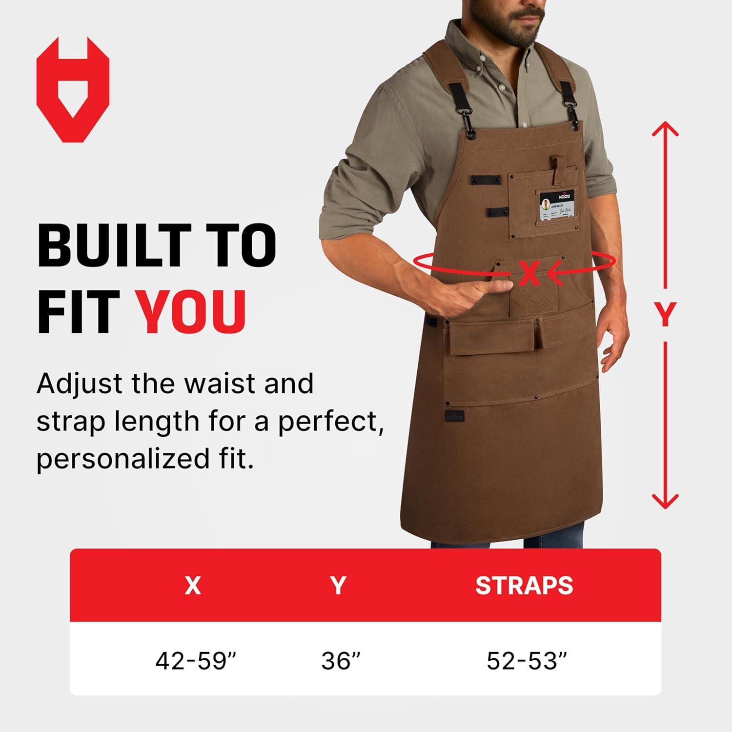 BUILT TO LAST — Discover long-lasting durability with these shop aprons for men. Made from heavy-duty fabric and extra-strong stitching, this tool apron for men is ready for your toughest tasks. Every pocket corner of this canvas aprons for men is fortified with metal rivets so it won't fray.